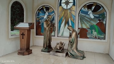Pada tahun 2018-2019, pembangunan Taman Doa dimulai dengan pembuatan patung-patung dan kaca patri yang akan dipasang di setiap Stasi Taman Doa. Pembuatan patung dan kaca patri ini dikerjakan oleh sepasang suami istri, Bapak Pius Prio Wibowo dan Ibu Sandra S. Hariadi di Bengkel Seni Rupa “a” milik mereka di Griya Bukit Mas II D1-17, Bojongkoneng, Cikutra, Bandung, Jawa Barat.