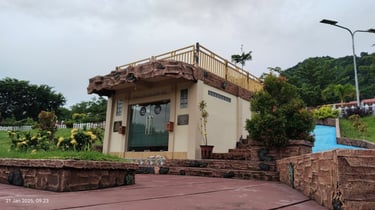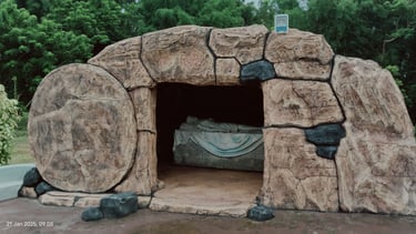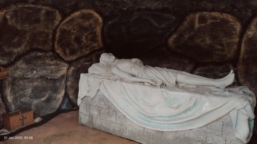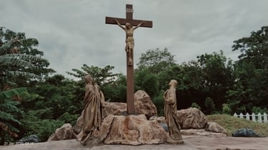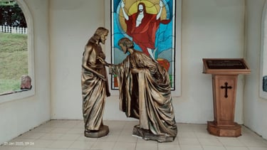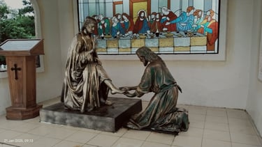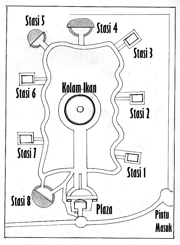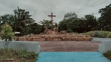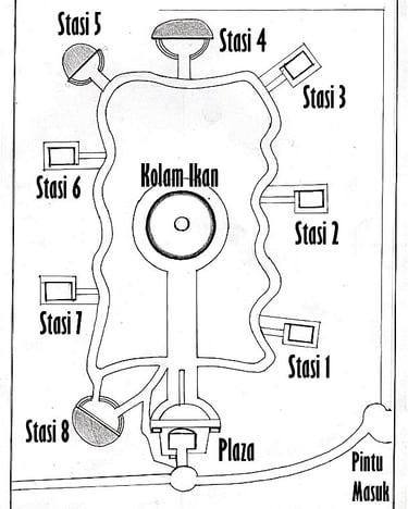 Umat dipersilakan memasuki Taman Doa melalui jalan/tangga turun di sekitar Pos Pantau/Plaza.