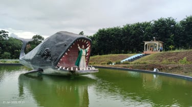 Selanjutnya umat dipersilakan menutup Doa Devosi dengan mendoakan “Doa Syukur Nabi Yunus” di sekitar kolam ikan, di bagian tengah Taman Doa.